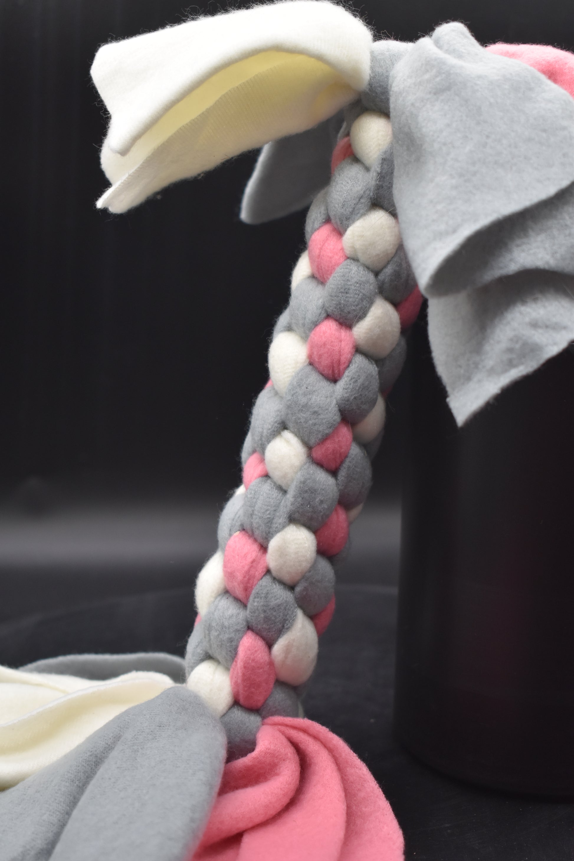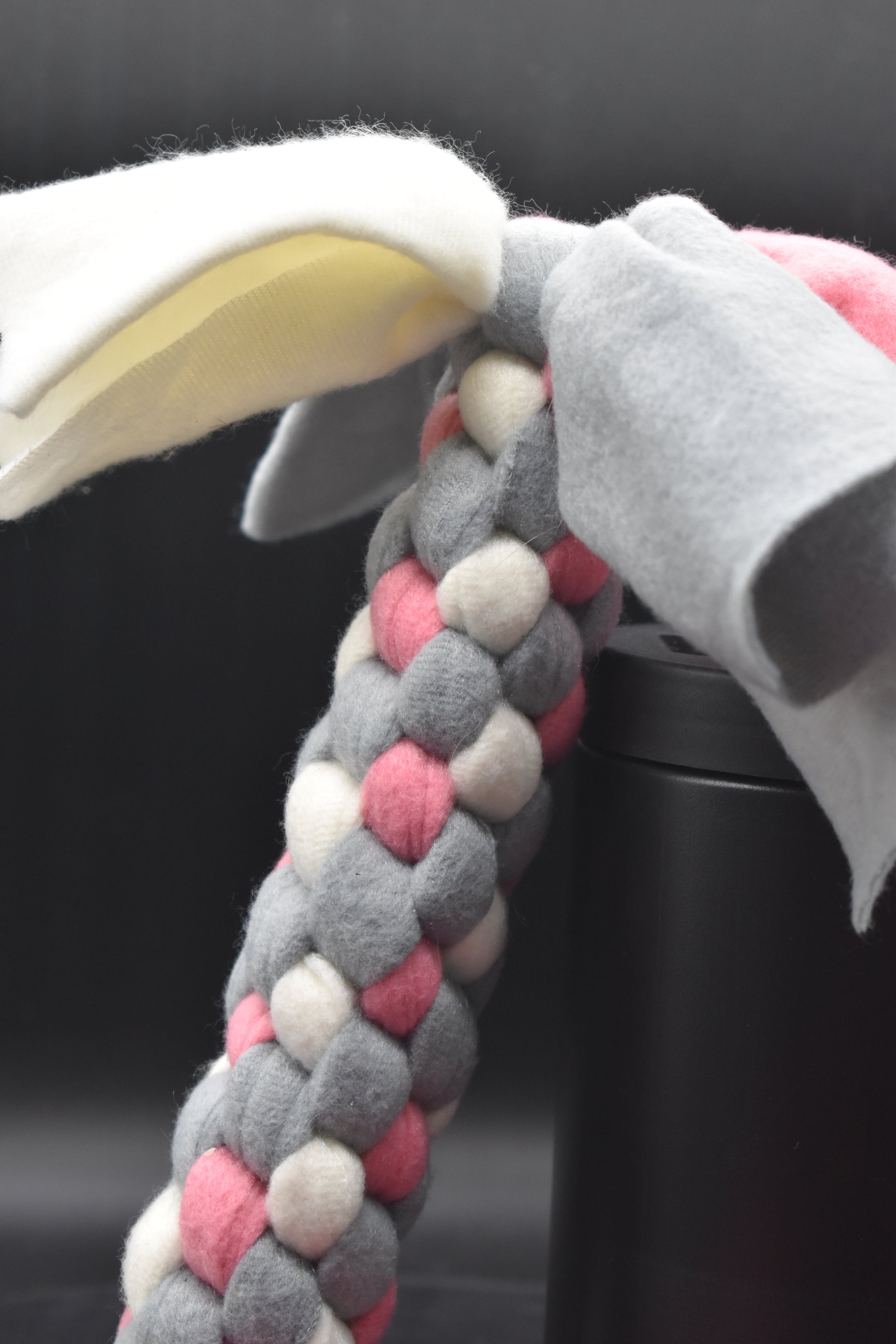 Entdecke unseren handgeflochtenen Zergel aus robustem Fleece – perfekt zum Spielen, Zerren und gemeinsamen Spaß haben mit deinem Hund. Durch die stabile Flechtweise hält er auch wilderen Zieh- und Apportierspielen stand und liegt dabei angenehm in der Hand.