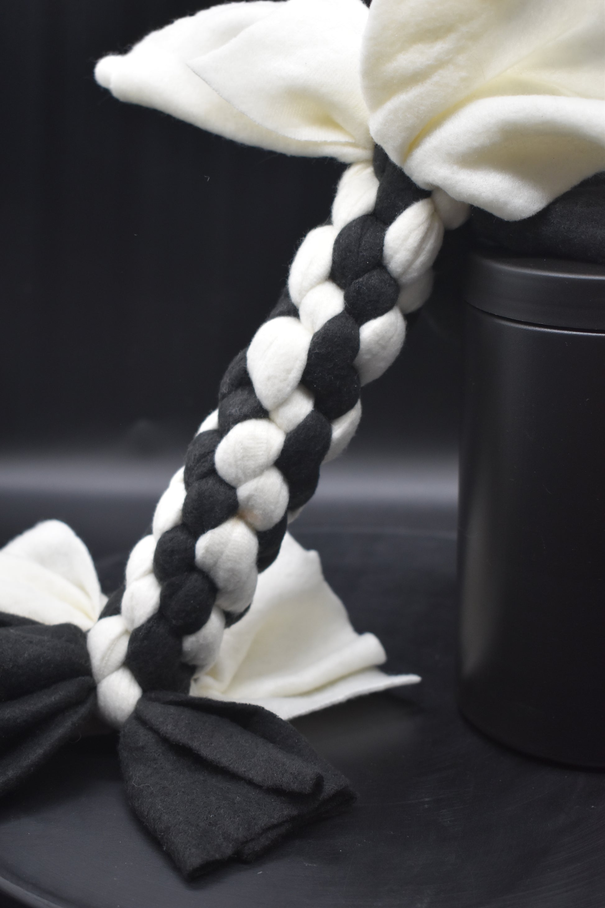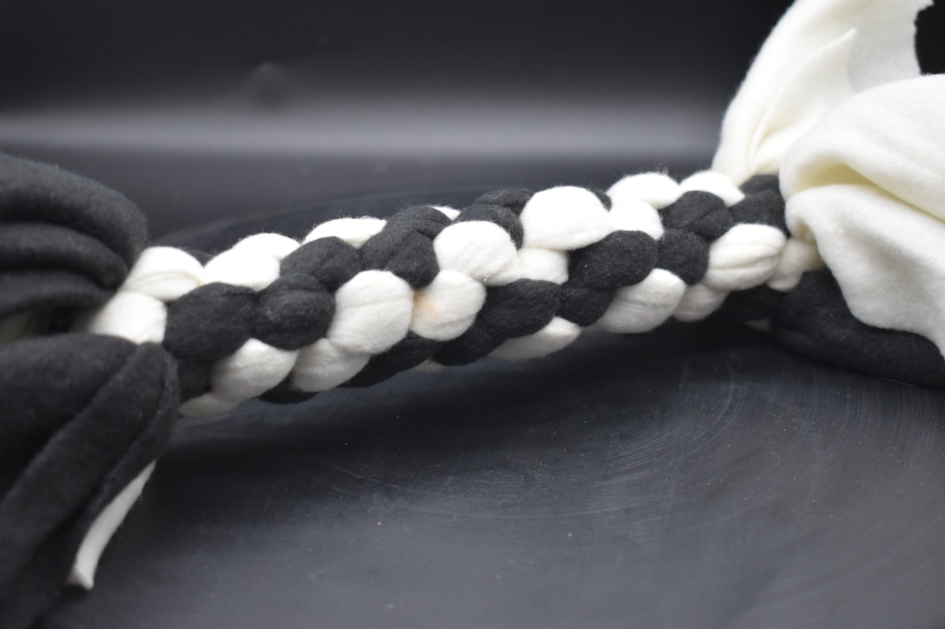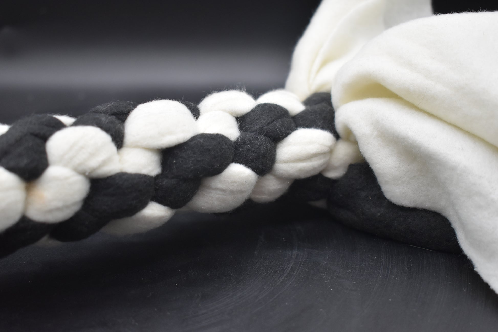 Entdecke unseren handgeflochtenen Zergel aus robustem Fleece – perfekt zum Spielen, Zerren und gemeinsamen Spaß haben mit deinem Hund. Durch die stabile Flechtweise hält er auch wilderen Zieh- und Apportierspielen stand und liegt dabei angenehm in der Hand.