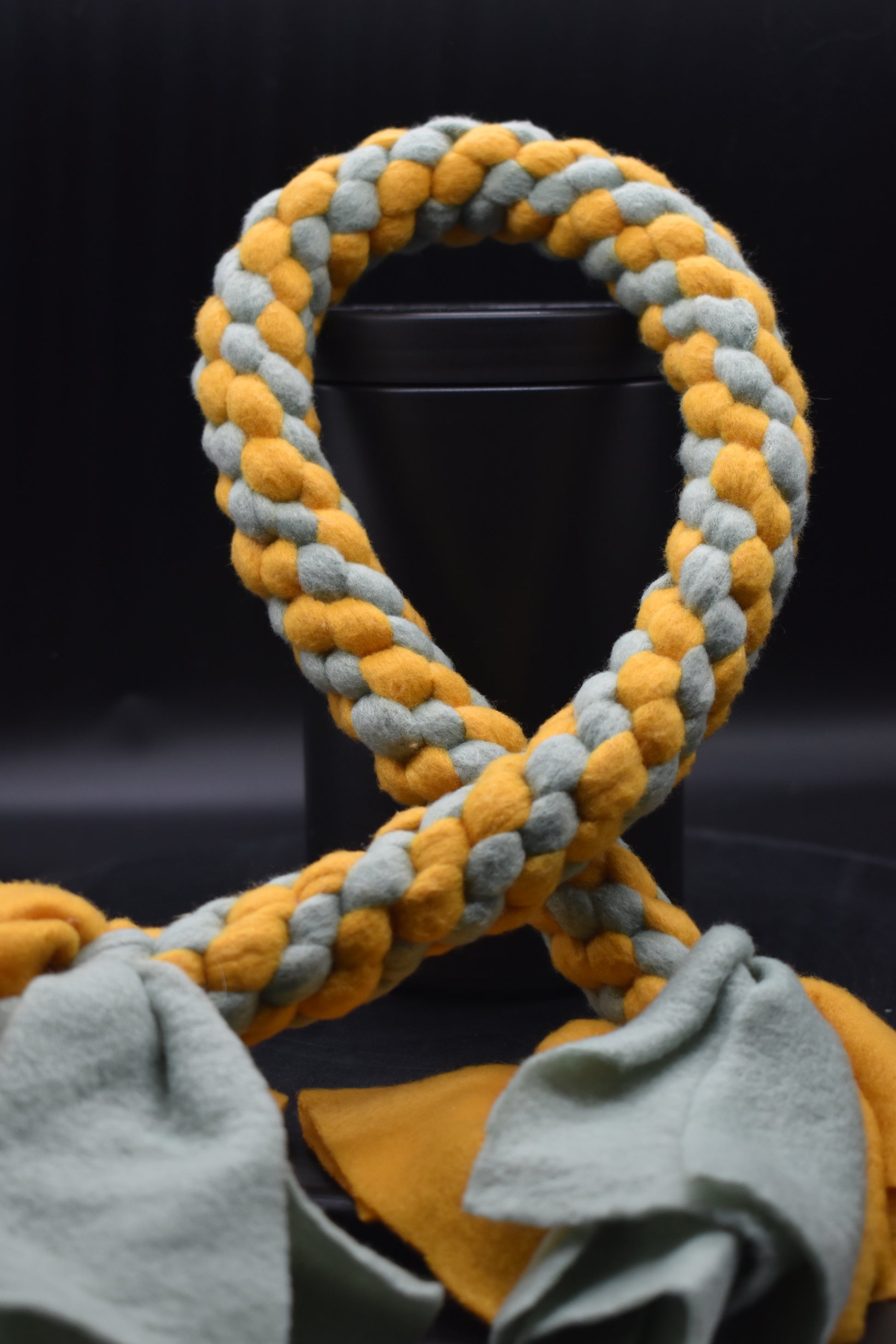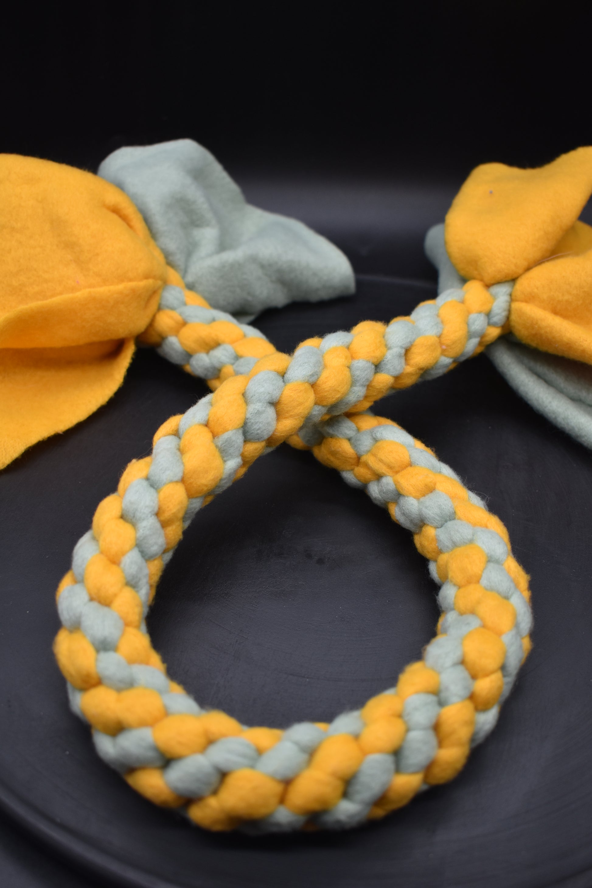 Entdecke unseren handgeflochtenen Zergel aus robustem Fleece – perfekt zum Spielen, Zerren und gemeinsamen Spaß haben mit deinem Hund. Durch die stabile Flechtweise hält er auch wilderen Zieh- und Apportierspielen stand und liegt dabei angenehm in der Hand.